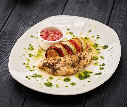 Стейк куриный с овощами гриль